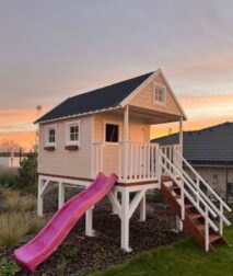 "Dobrý večer! Veľmi pekne Vám ďakujeme za skvelú spoluprácu. Domček nás prekvapil o mesiac skôr, čo nás nesmierne potešilo. Dcéra už má rozvrh kedy tam bude s ktorými kamarátmi a kamarátkami spať hneď ako začnú prázdniny. No prvý deň po postavení musel sám ocino s dcérkou vyskúšať ako sa v ňom spí 😄👍. Skvelá práca majstrov v našich sťažených podmienkach, veľká úcta. Ďakujeme veľmi pekne! Fakt sme veľmi spokojní. Určite budeme odporúčať."