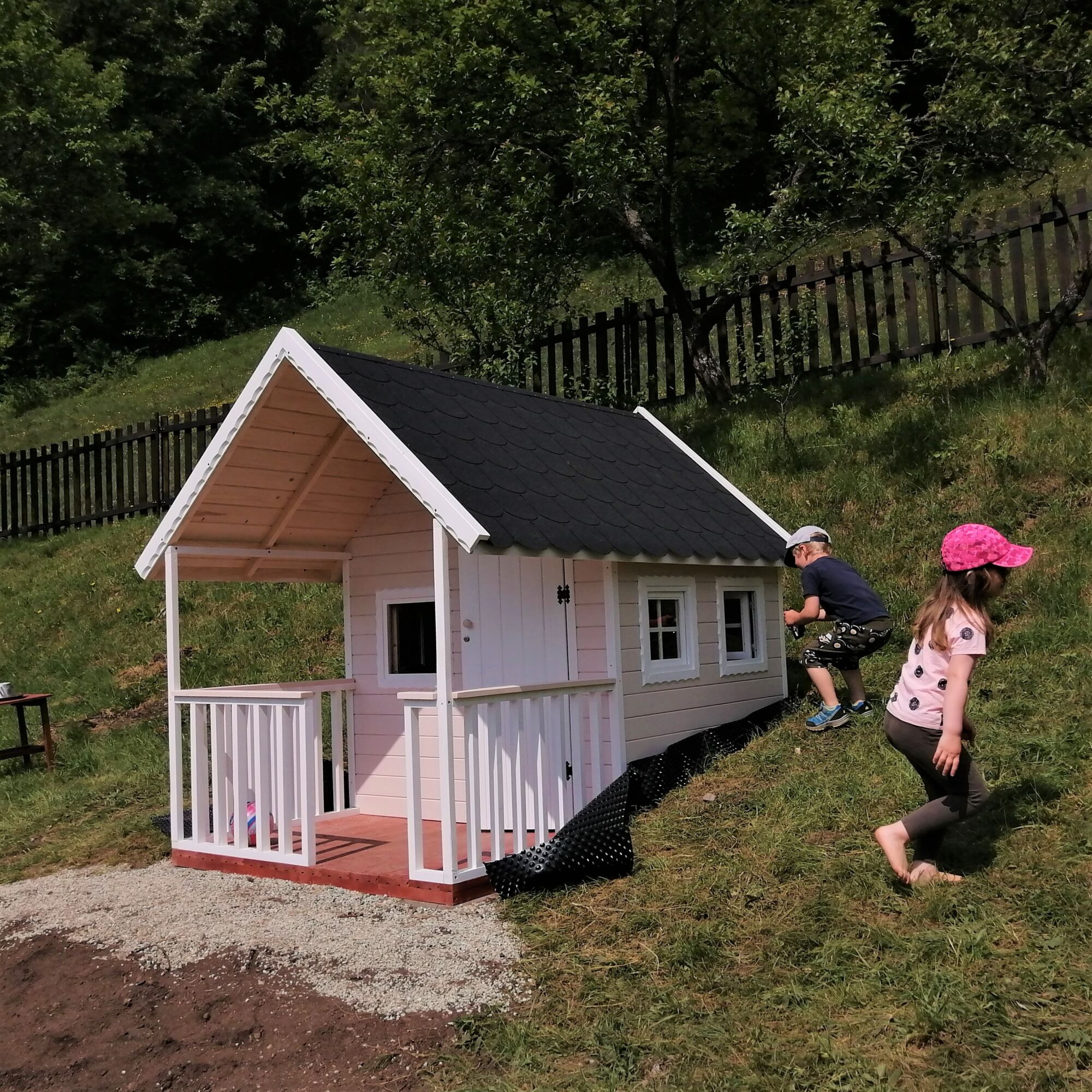 „Aspoň prostredníctvom e-mailu Vám VEĽMI ďakujeme za nádherný domček! Máme z neho všetci obrovskú radosť. Celá komunikácia aj montáž bola úžasná. Montážnici boli skvelí, domček je absolútne prekrásny. Farba, ktorú sme vybrali, je perfektná, myslím, že nám super sedí do záhradky aj k nášmu domčeku. Majte sa krásne, robíte krásnu prácu, ktorá rozžiari tváričky detičiek, ale aj všetkých dospelých.“