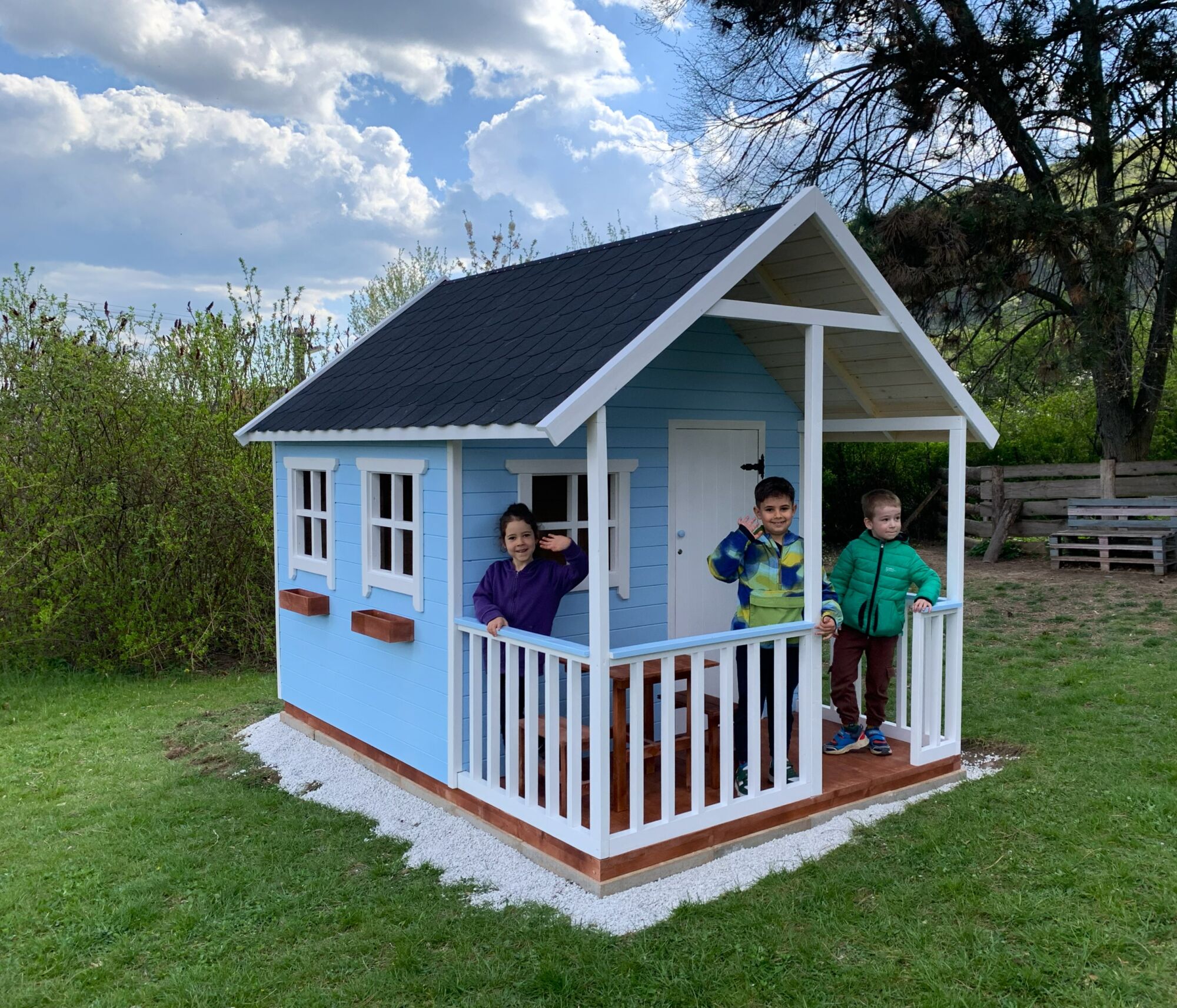 meniacom svete. Môžu sa stať miestom, kde sa schováte od každodenného zhonu či stresu a kde si môžete oddýchnuť. V súčasnosti nielen dospelí, ale aj deti čelia nadmernému množstvu rušivých podnetov z okolia či médií. Záhradný domček pre deti sa tak, môže stať útočiskom a bezpečným priestorom, v ktorom sa môžu Vaše deti ponoriť do ticha alebo do hry, a tak rozvíjať svoju kreativitu.