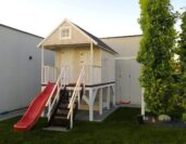 Vyvýšené domčeky so šmýkačkou, hojdačkou či pieskoviskom